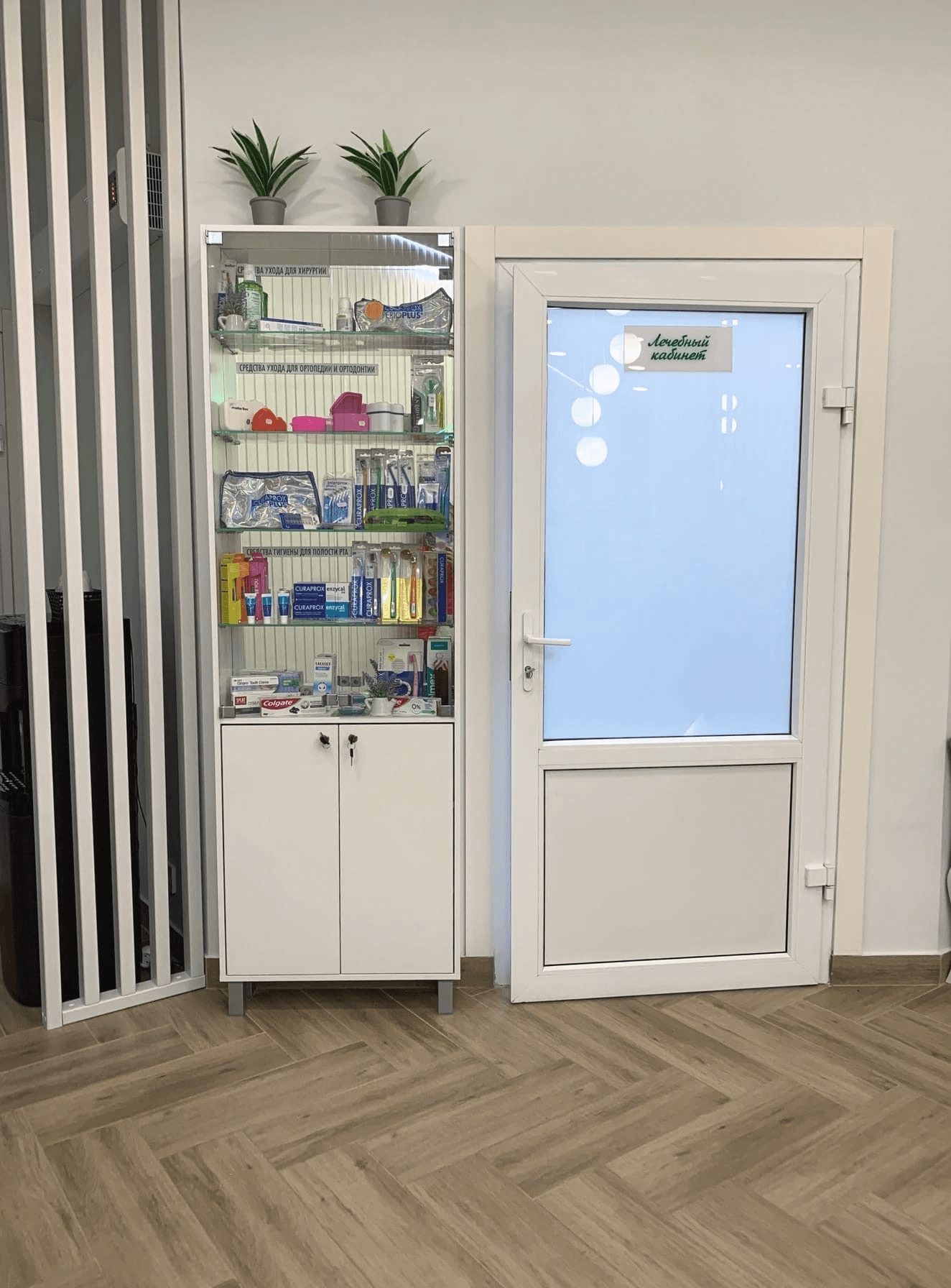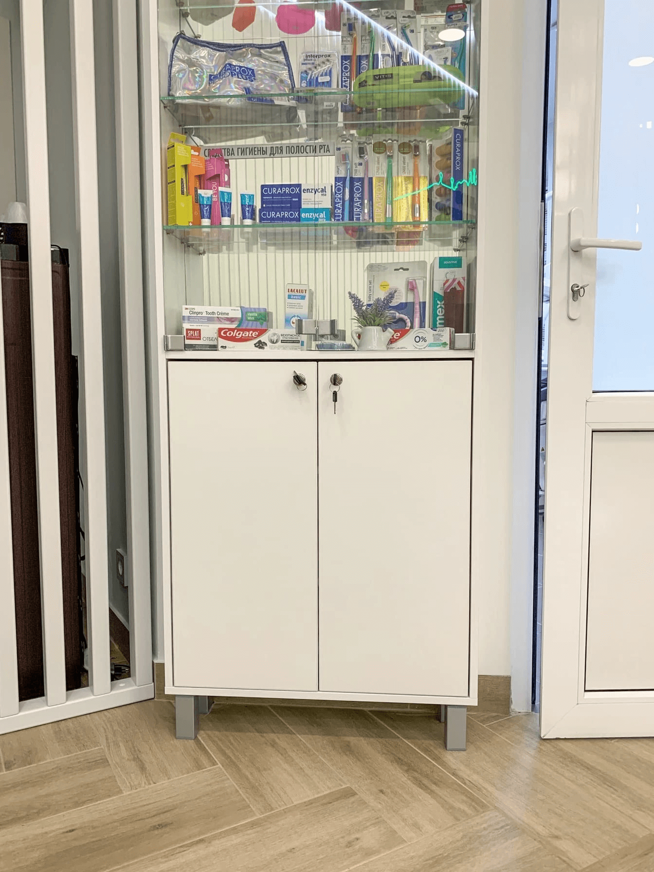 Изготовили шкаф-витрину со стеклом для демонстрации сопутствующей продукции.