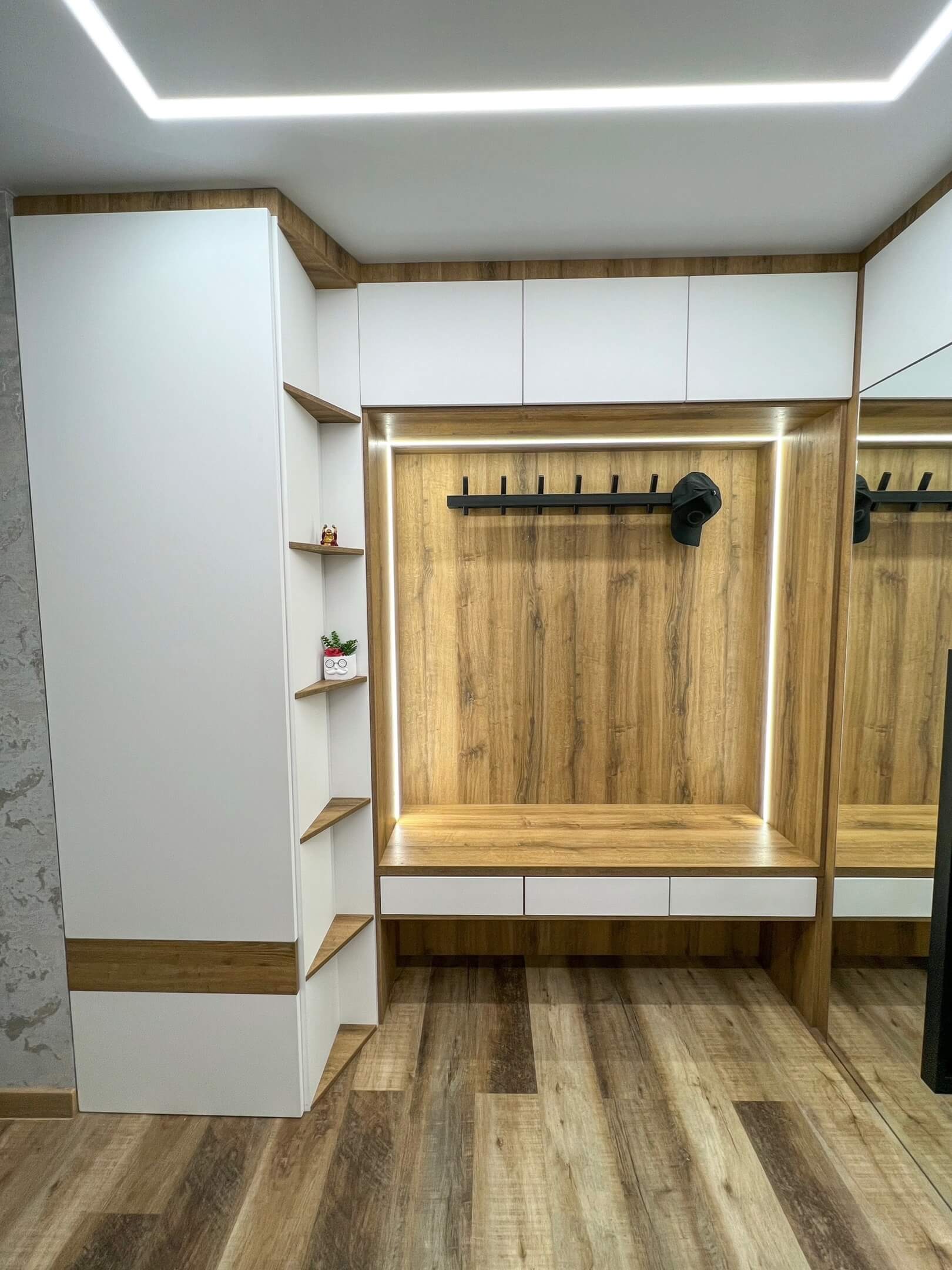 В зеркальные двери прихожей удобно посмотреться перед выходом из дома.